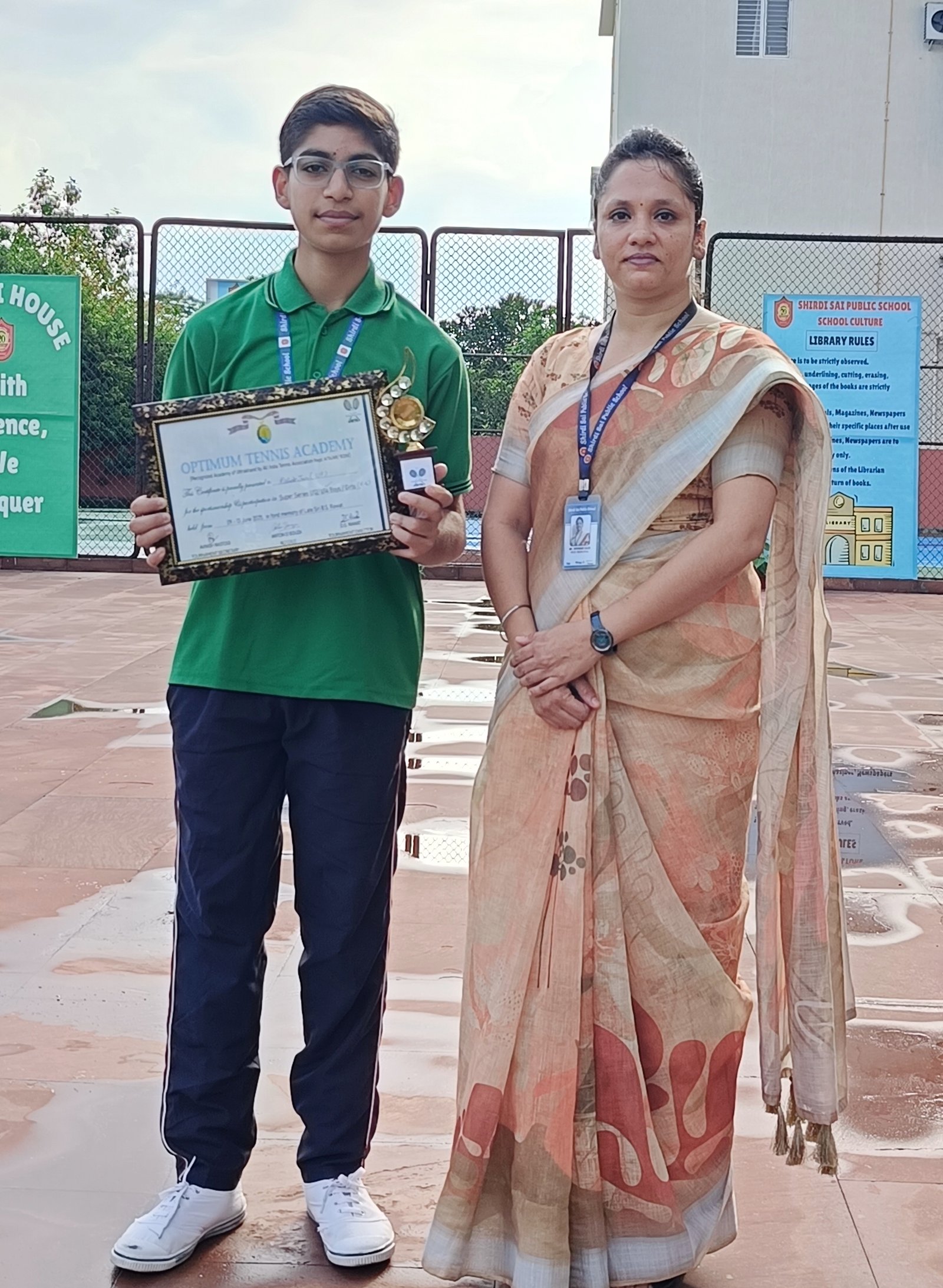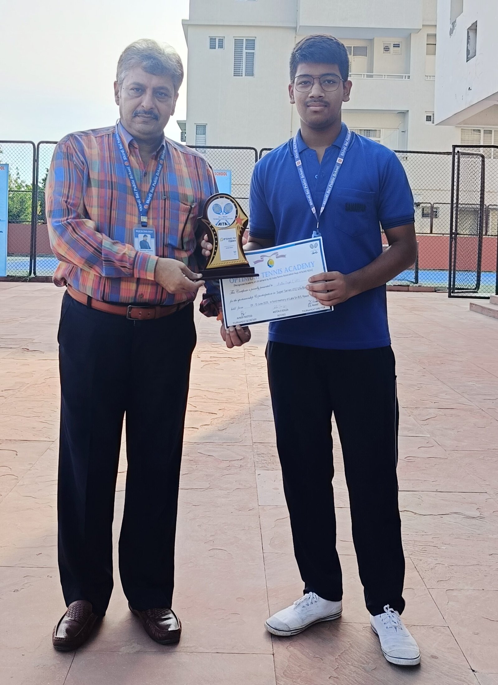 RISHABH JAIN AND KETAN SINGH OF GRADE IX (C) WON TROPHY & CERTIFICATE FOR THEIR OUTSTANDING PERFORMANCE IN THE UNDER-14 BOYS TENNIS COMPETITION